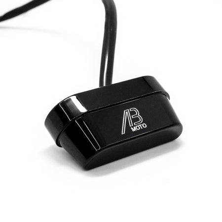 Kennzeichenbeleuchtung aus gefrästem Aluminium mit eingraviertem AB Moto-Logo.