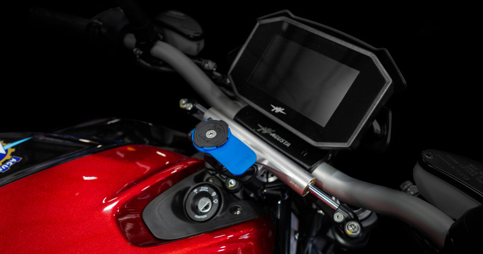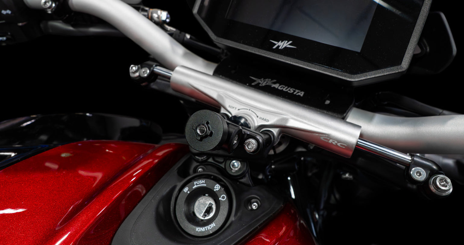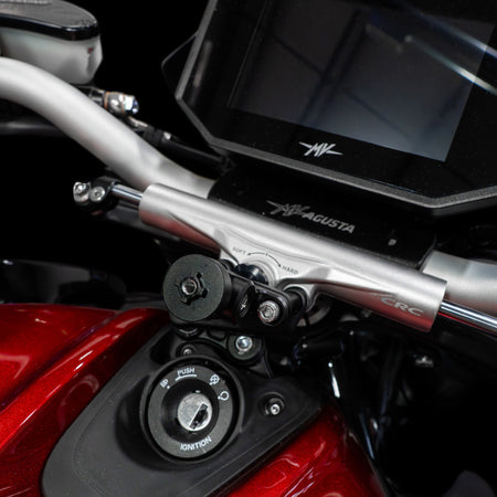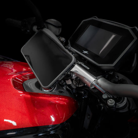 Mit unserer verstellbaren Handyhalterung aus gefrästem Aluminium schützen Sie Ihr Smartphone unterwegs optimal vor herumfliegenden Gegenständen. Kompatibel mit den Handyhalterungssystemen Quad Lock, Rokform und SP Connect.
