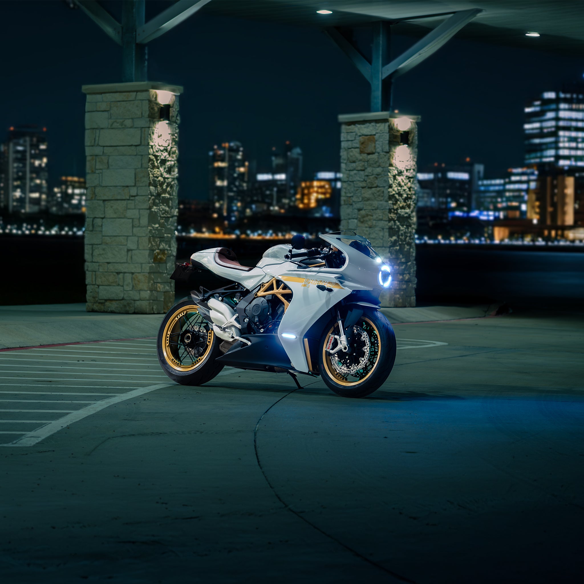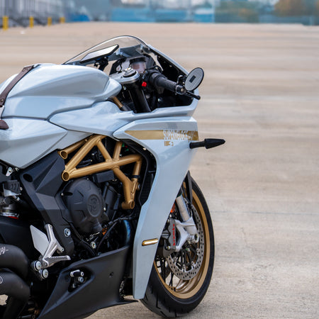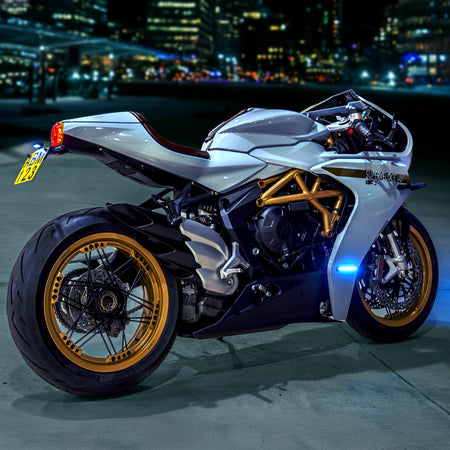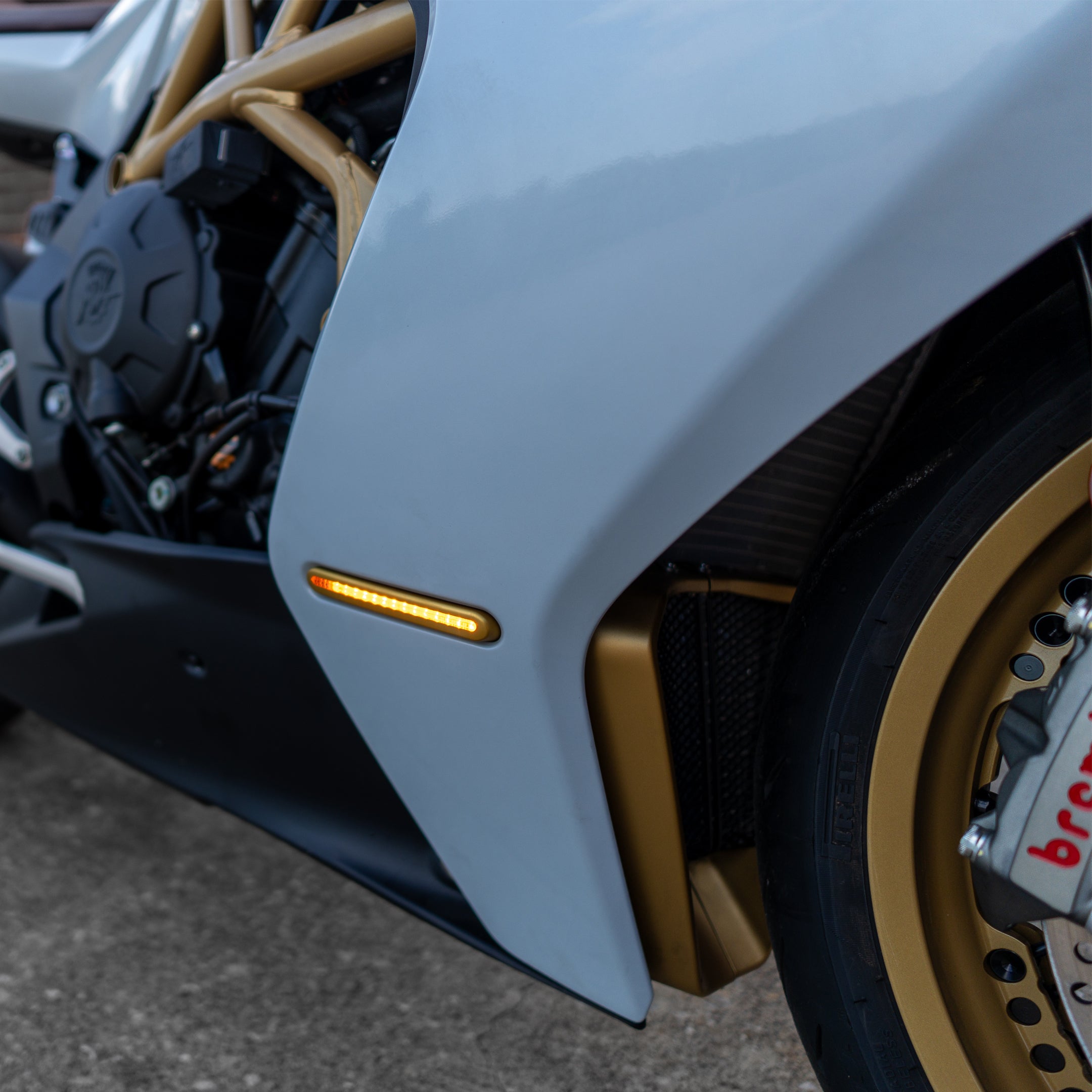 Gehen Sie bei Sicherheit und Stil keine Kompromisse ein und verbessern Sie die Sichtbarkeit Ihres Motorrads mit unserem Superveloce 800 Seitenpanel-Tagfahrlicht mit Umschaltfunktion.